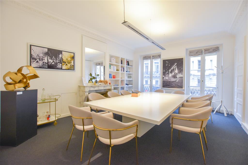 Métro Opéra, dans un immeuble de standing, à louer au 1er étage avec ascenseur, une surface de 132m²     CARACTERISTIQUES DE L'OFFRE  Une entrée 3 bureaux sur rue 2 bureaux sur cour Blocs sanitaires Moulures, cheminées Fibre Climatisation réversible Gardienne CONDITIONS FINANCIERES  Bail :  3-6-9 ans Loyer mensuel : 7 700 € HT/HC Disponibilité : Après accord €